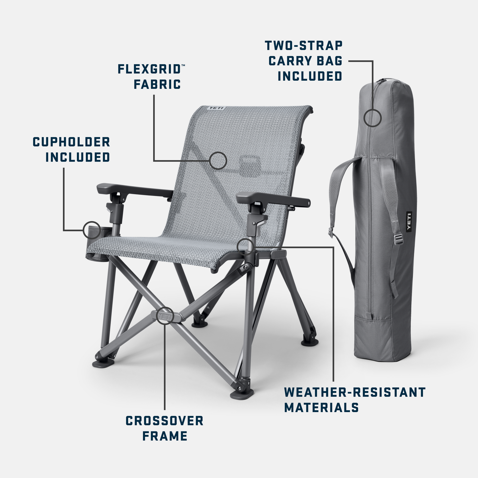 Meet the chair that understands the value of putting your feet up. Our Trailhead® Camp Chair is a best-in-class seat designed for legendary durability and hardcore comfort. With the included carry bag, it’s easy to bring your chair to the campfire, soccer game, or backyard barbecue. And ultra-supportive FlexGrid™ Fabric makes for a comfortable landing. You and your seat are going places.