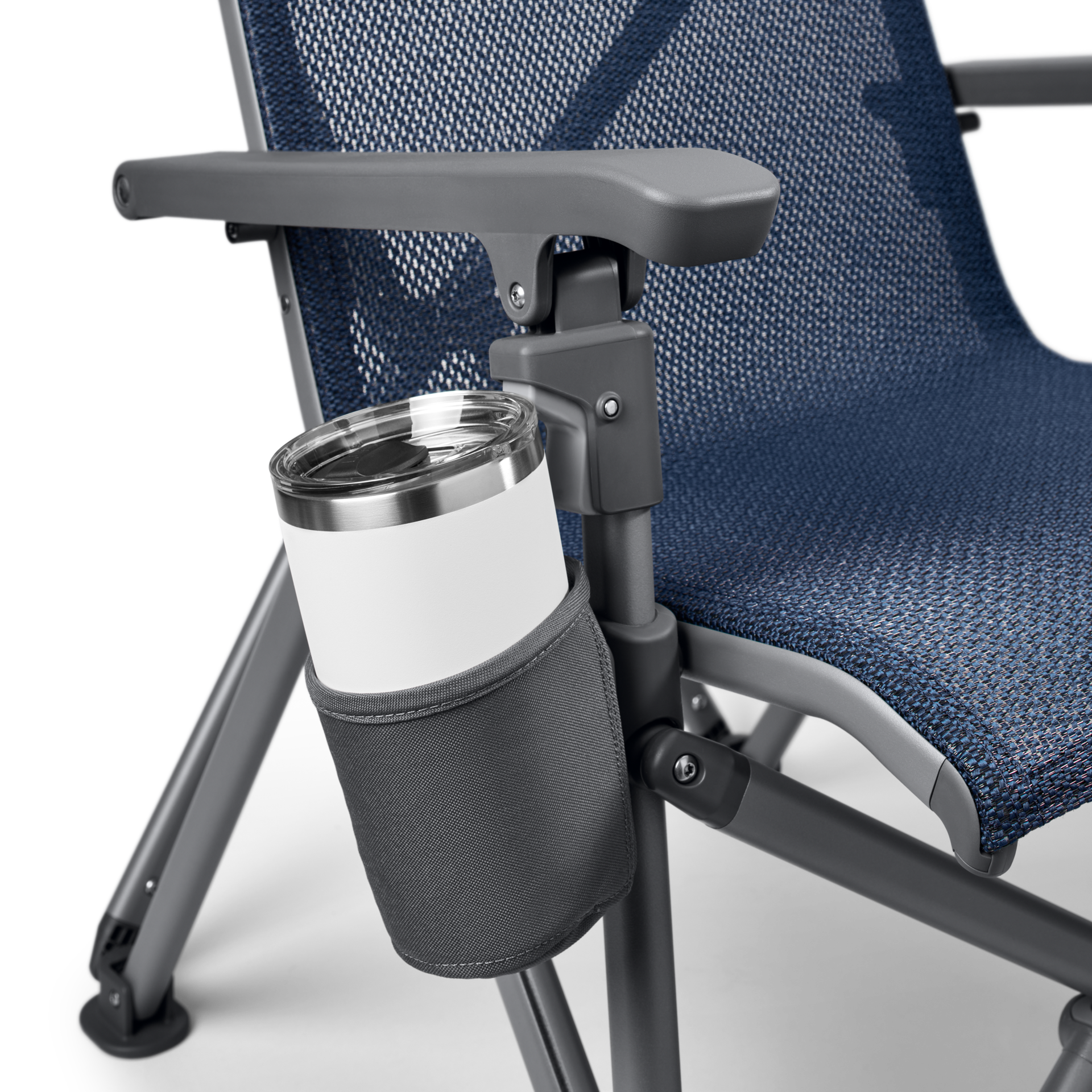 Dock your drink on the right or left side without giving up armrest space.